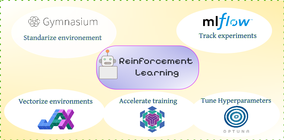 Reinforcement Learning (RL) represents a powerful framework for solving sequential decision-making problems in dynamic environments across diverse domains, such as control of robots or optimization of profit. However, its practical implementation requires navigating a variety of software packages, encompassing deep learning libraries (e.g., TensorFlow, PyTorch, JAX/Flax), environment frameworks (e.g., Gymnasium, Numpy), and hyperparameter optimization techniques and libraries. This post critically evaluates the common PyTorch, Gymnasium, and NumPy RL stack by comparing it to a faster alternative: JAX/Flax for both of the model training and simulation of environments. A Gridworld example evaluating both training speed and accuracy is utilized to test these packages. Additionally, we complement this example by a comprehensive tracking and monitoring of the training process using MLflow along with a thorough hyperparameters optimization via Optuna. The post concludes with a discussion of the results and final recommendations for optimal use cases of each of these packages.